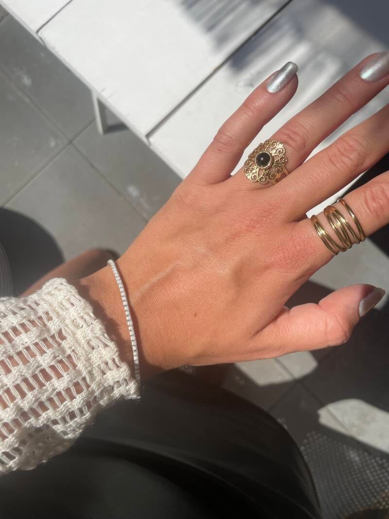 Laat je huidproducten goed drogen voordat je je sieraden om doet, om te voorkomen dat ze worden aangetast. Gun je huidverzorging de kans om volledig in te trekken, voordat je je sieraden toevoegt aan je look.